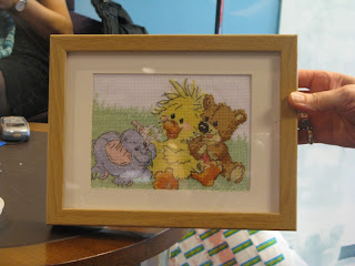 Donna also finished the soft toys she had been working on. They are from a pattern in an issue of "Simply Knitting". They turned out really well and are so soft and cuddly. They are to be a gift for a friend who is expecting. Which is a shame as I had my eye on the caterpillar. On Tuesday she was working on a cross stitch project which she came across when going through her stash. She was having a tidy out and when she found it decided to pick it up again.